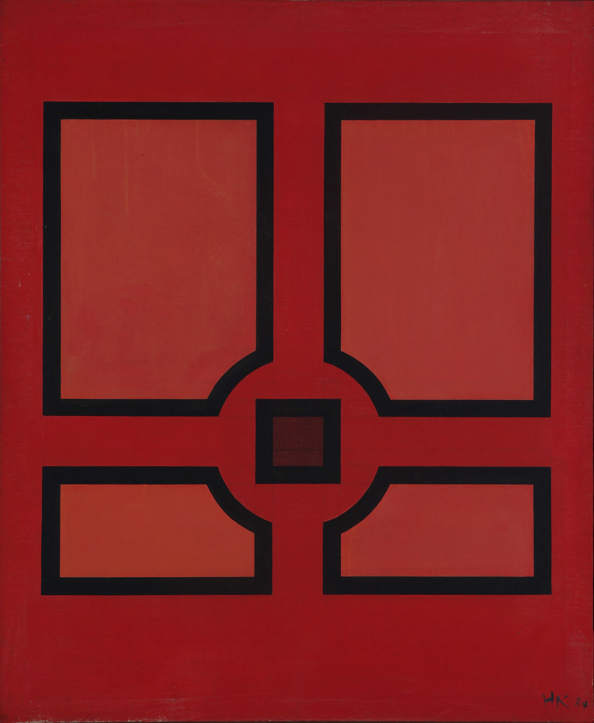 这些看似蒙德里安的几何式抽象其实是非常东方主义的,但不保守于东方主义。它们是黄锐介绍宏大宇宙空间一隅的个人语言。