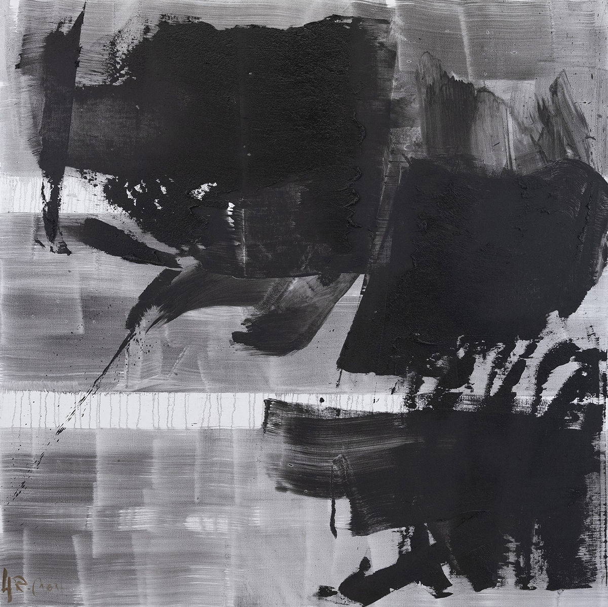 “Inlaid-out Tao is the latest work made during the time spanning from 2020 to 2021.Tao as the most basic element of Huang Rui's abstract paintings can be seen intuitively from every brush stroke the artist leaves on the canvas. Such attempt of grasping the essence of things comes from Huang Rui's interest in the thought of Zhouyi where all things and phenomena between the heaven and the earth are evolved into diagrams consisting of short lines in bagua (eight trigrams). Secondly, Tao itself speaks. From the early days of Huang Rui’s creative career, abstract visual language has become a statement involving cultural standpoints. Finally, the creation of abstract painting can also be understood as a way without way because of the unattainable emptiness brought about by abstraction itself."
