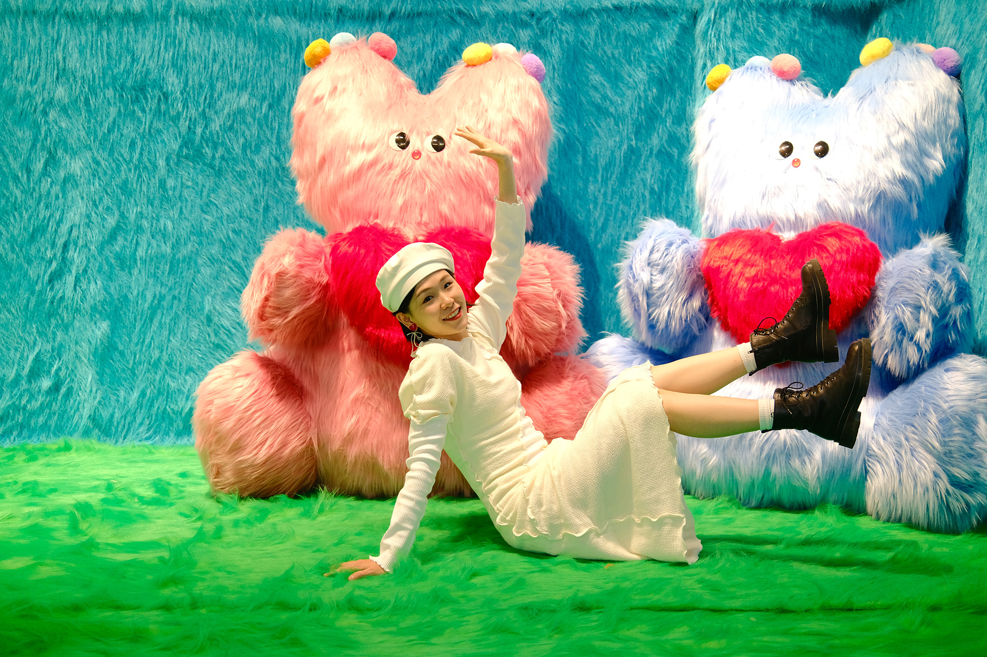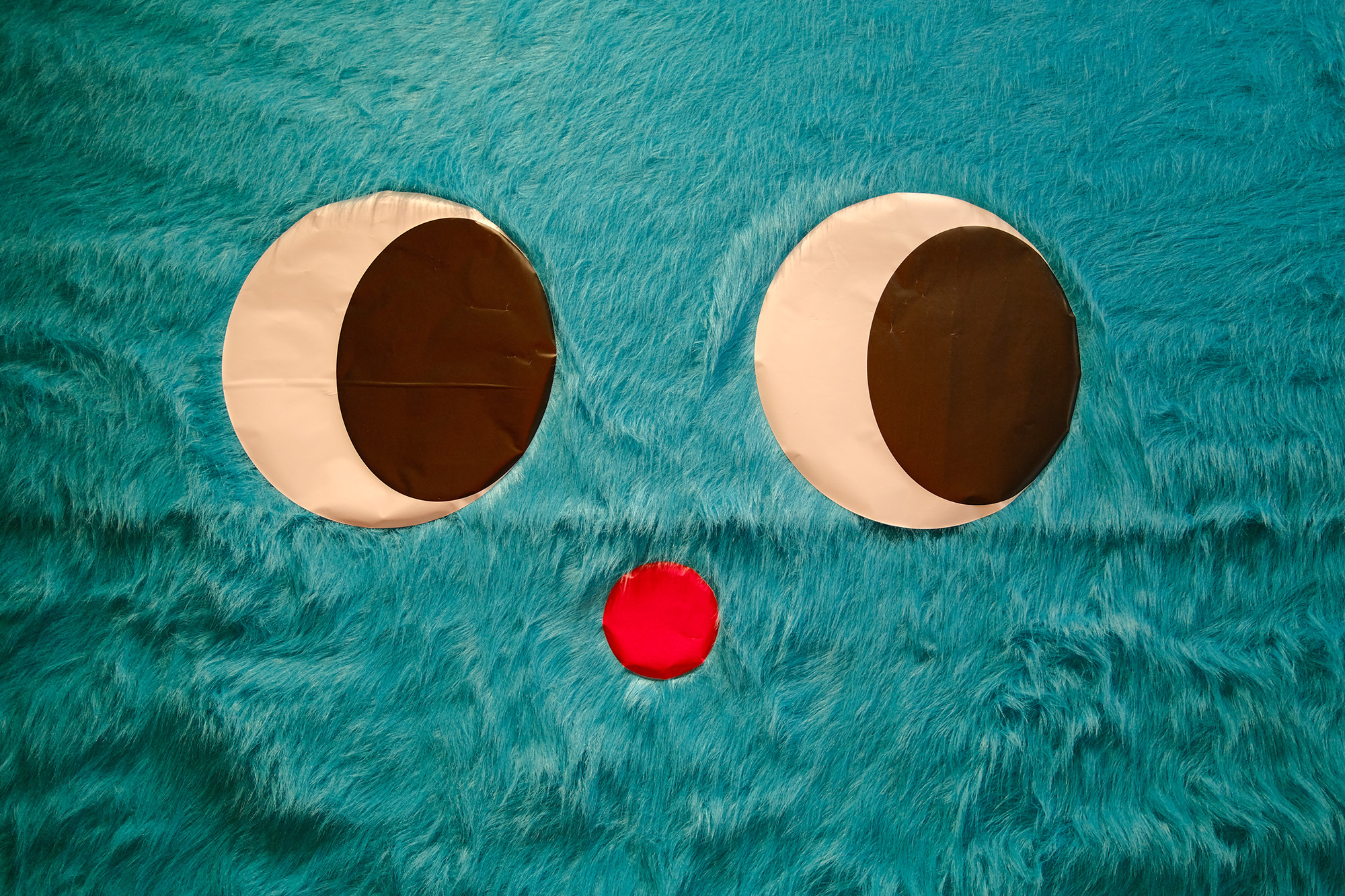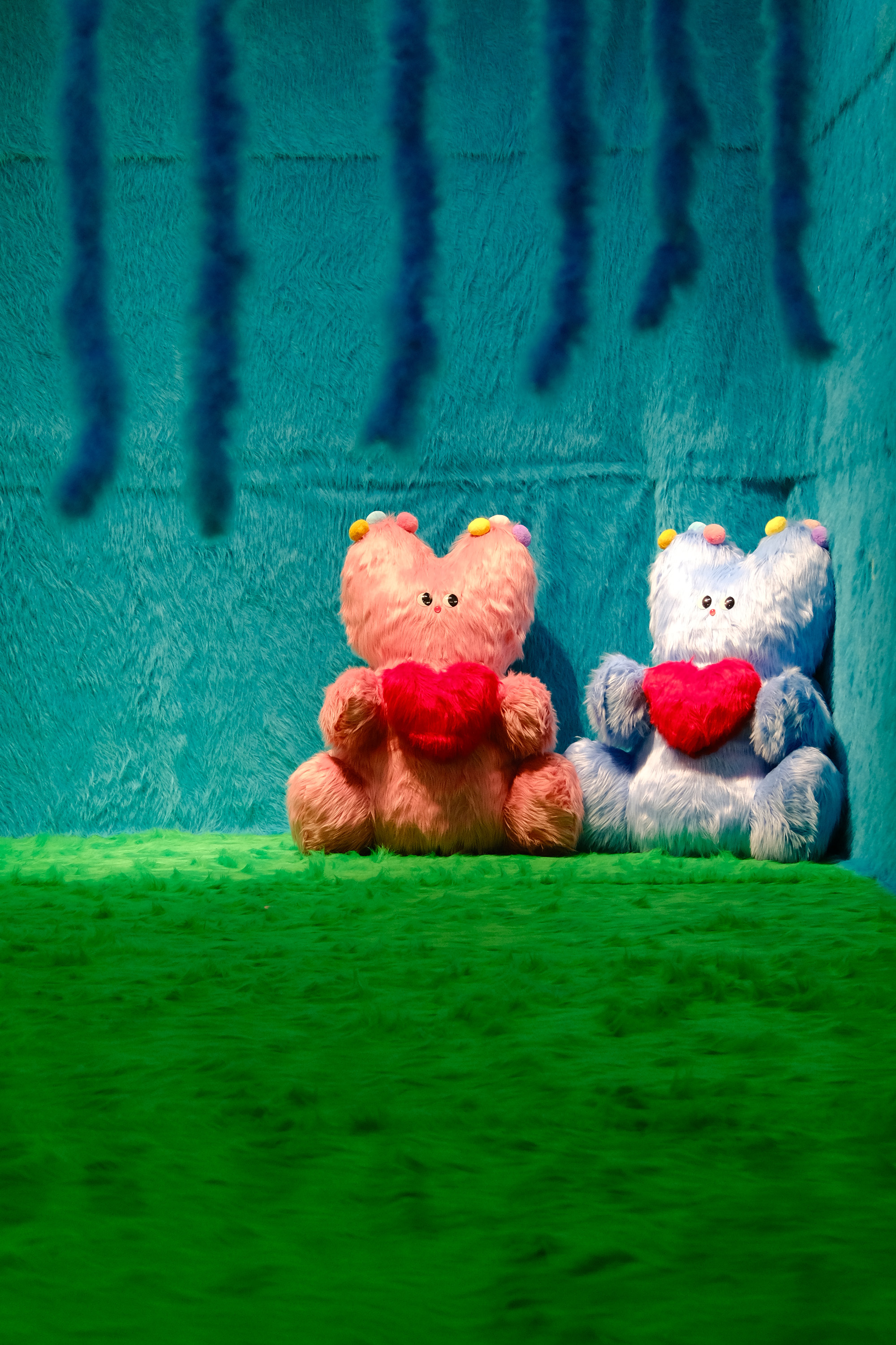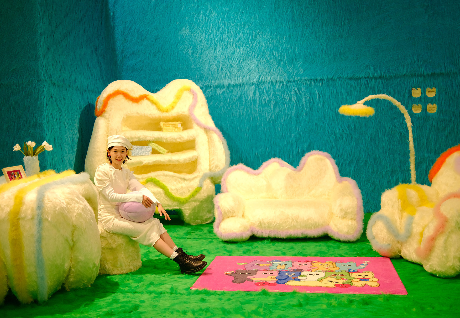 此次个展,我尝试去做一个“读卡机器”,对奶噗噗的世界进行解码。整个展览空间,就像奶噗噗的外表一样,全部都采用柔软温暖的长毛材质进行包裹,人们置身其中仿佛行走于奶噗噗的身体之中,一步步探索这个神秘生物的内心世界。