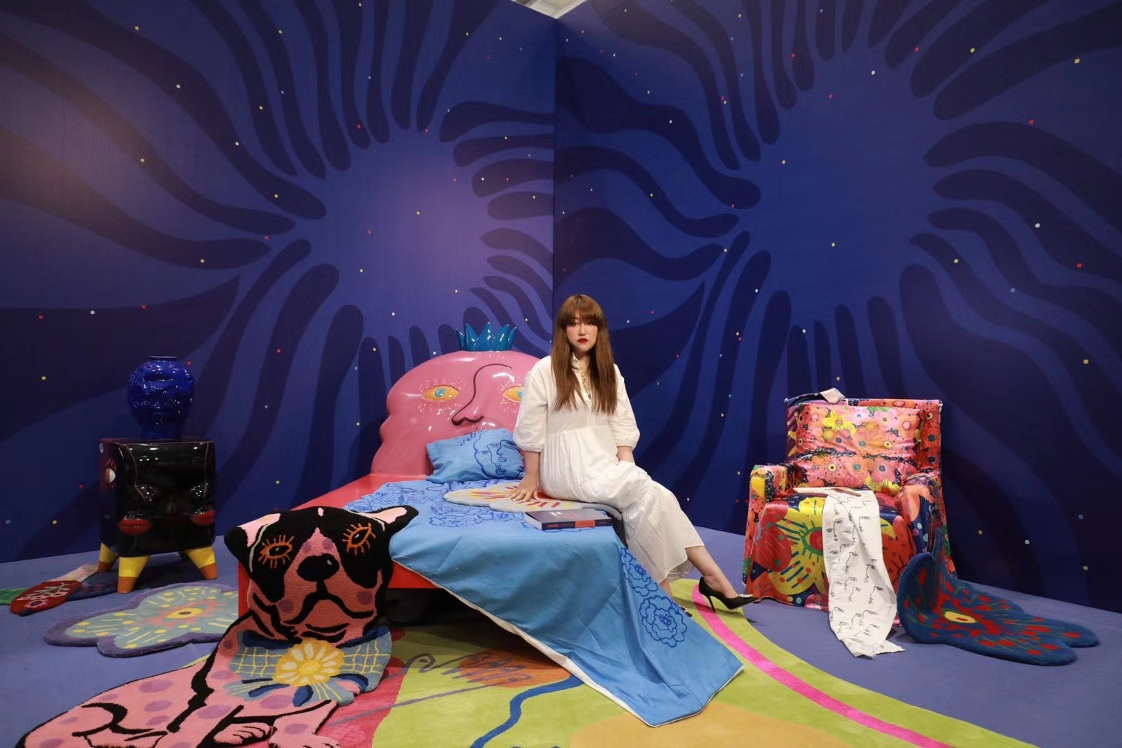 擅长将个性想法投诸于空间、广告和服饰之上,表达她鲜明的视觉语言,无论是精致、摩登、幽默的还是神秘、魔幻的,作品围绕着动植物与女性身体进行不设边界的探索。无限的人面符号与强烈的色彩向人们展现了另外一种创造表达,年轻的心灵不愿受规则的桎梏,内心渴望创造,用创造力来发掘隐藏于生命中的无限乐趣。生命与死亡的交替、孕育及摧毁的循环、建构与破坏的往复。带着无限循环的"永恒更生"拥抱对立的自我更新。
